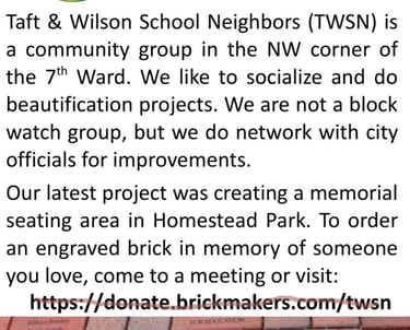 The 7WCC serves as fiscal agent to support our neighborhood groups in their efforts to beautify and improve their areas. Joining a neighborhood group is a great way to socialize with neighbors, make new friends, and get involved in your community.